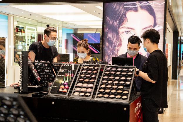 chọn lựa tới những nơi có các hoạt động đảm bảo an toàn dịch bệnh. Ảnh: viên chức TTTM Vincom đang tiến hành kiểm tra thân nhiệt cho khách trước khi vào mua sắm.